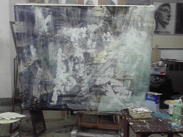 大きなのが少なそうなので、香月と話し合った結果、50号も出そうかと古いキャンバスを引っ張り出してきました。潰し中です。